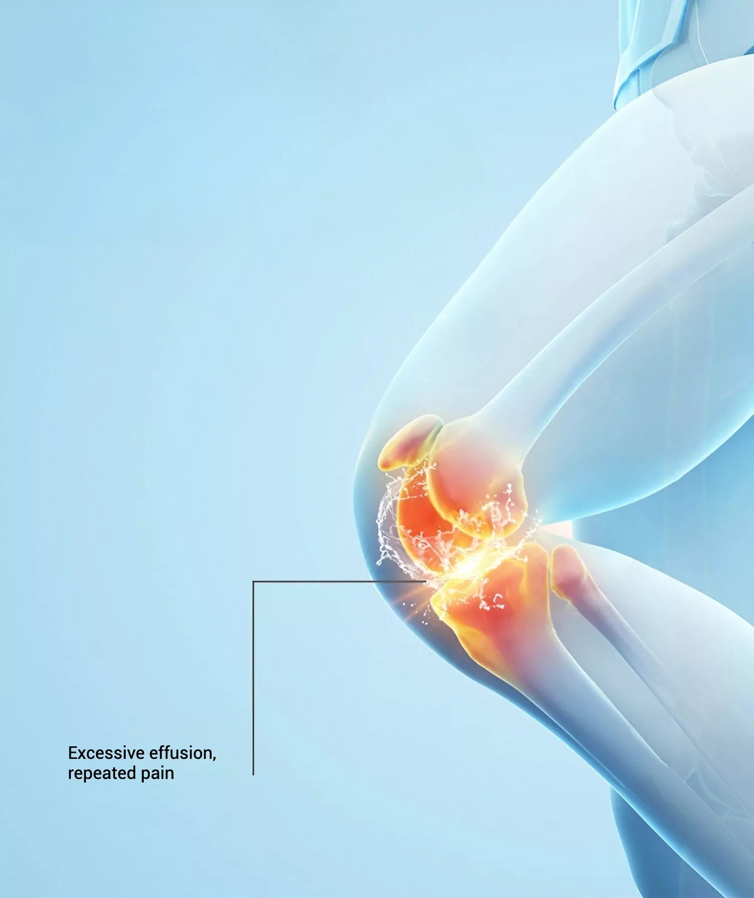 Wenn wir älter werden oder unseren Körper jahrelang intensiver körperlicher Aktivität aussetzen, kann das natürliche Gleichgewicht der Synovialflüssigkeit in unseren Kniegelenken gestört werden. Dieses Ungleichgewicht führt häufig zu Flüssigkeitsansammlungen, die anhaltende Schmerzen verursachen und in schweren Fällen alltägliche Bewegungen wie Gehen zu einer Herausforderung machen.