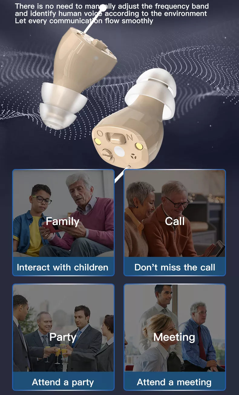 Unser Hörgerät passt sich automatisch an verschiedene Umgebungen an und passt seine Einstellungen mühelos an, um optimale Leistung zu erzielen. Egal, ob Sie sich in einem ruhigen Raum oder auf einer belebten Straße befinden, es sorgt dafür, dass Sie in jeder Situation klar und bequem hören.