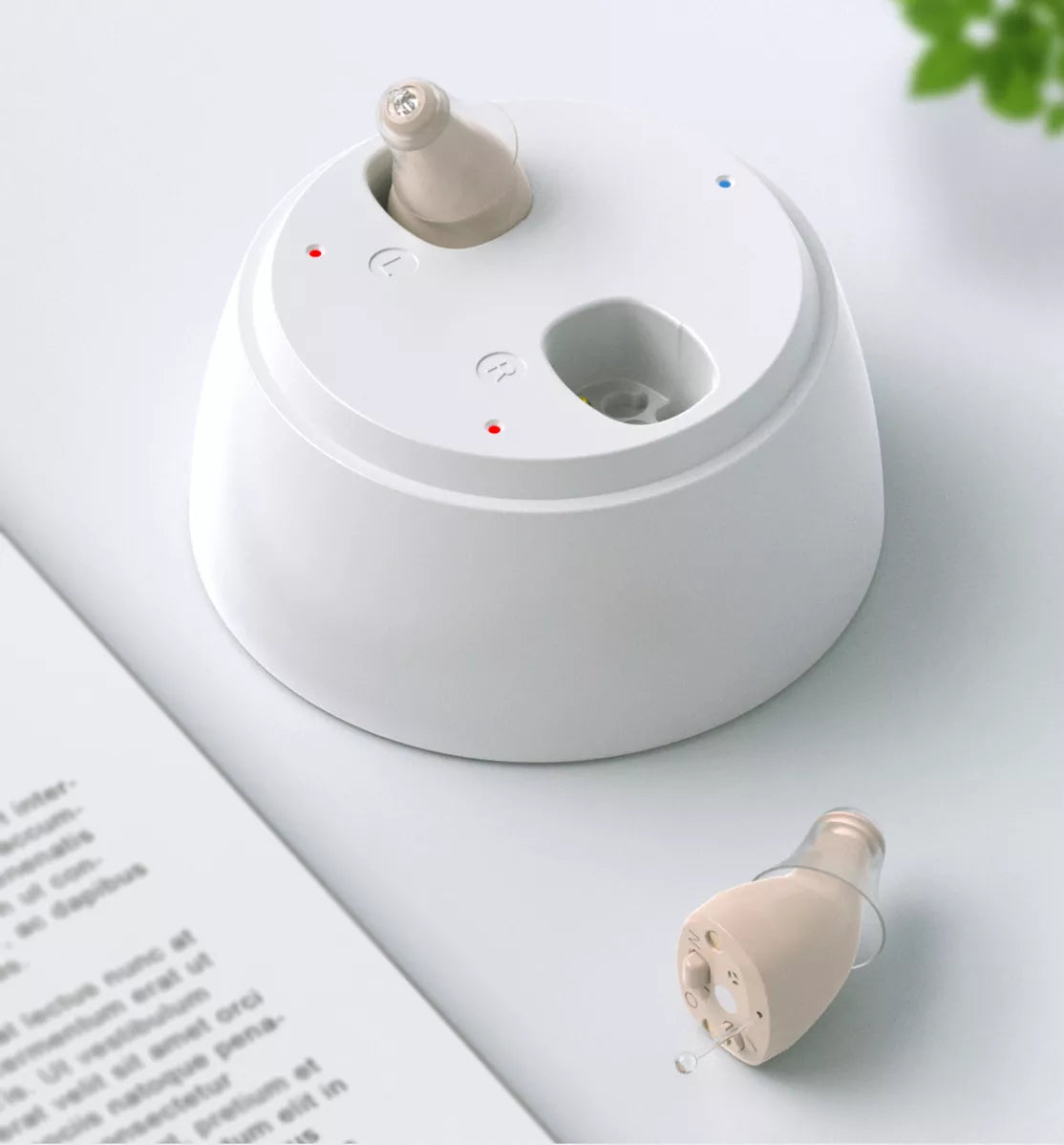 1. Stellen Sie sicher, dass das Hörgerät vollständig aufgeladen ist, und nehmen Sie es aus dem Etui.