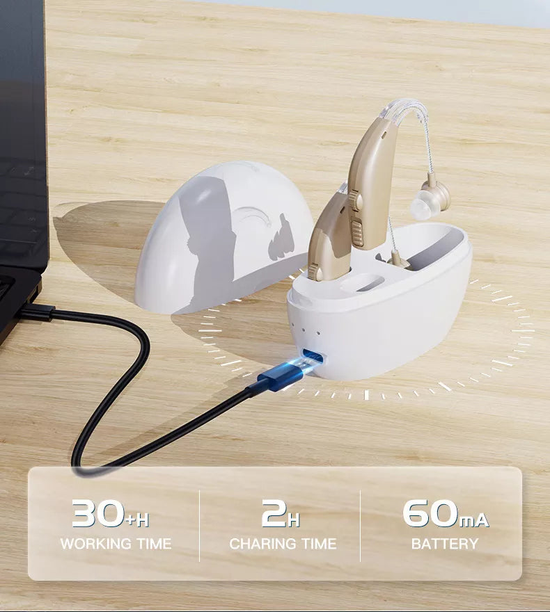 Notre aide auditive est conçue pour le confort, avec un design léger et ergonomique qui s'adapte parfaitement sans causer d'inconfort. Elle est si confortable que vous oublierez que vous la portez.